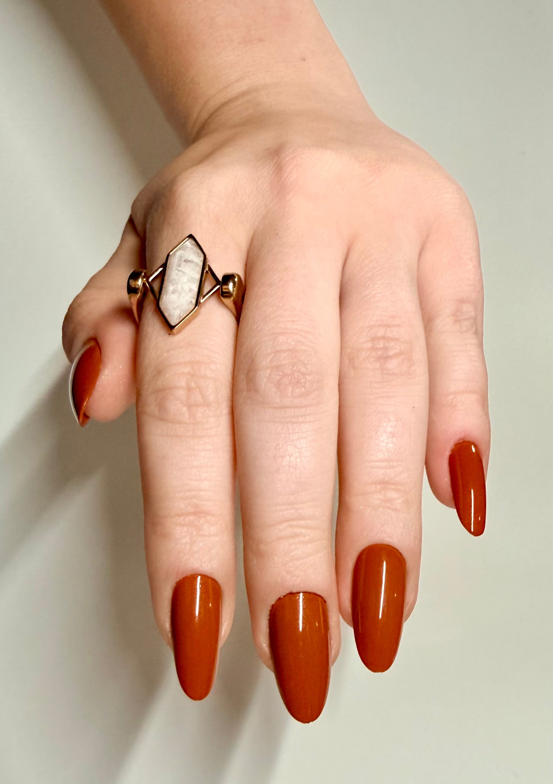 🧡 Spice It Up – a warm, pumpkin-spiced burnt orange crème, as cozy as fresh pie straight from the oven.