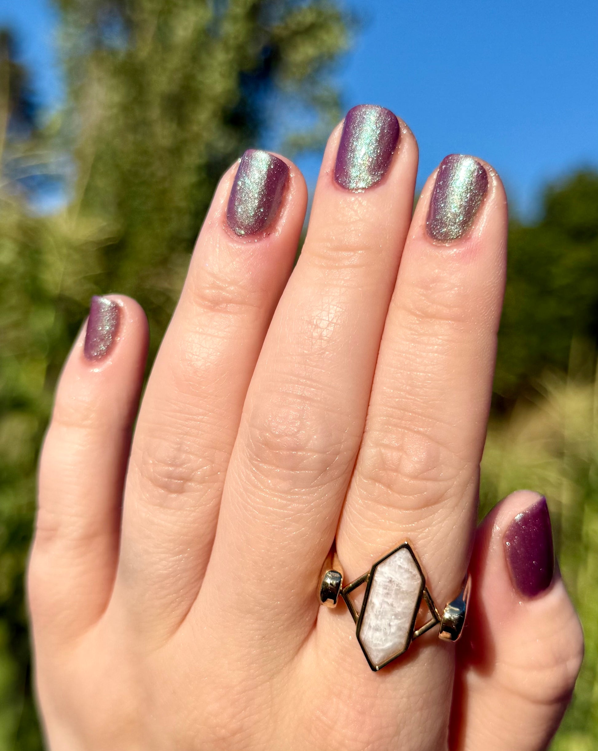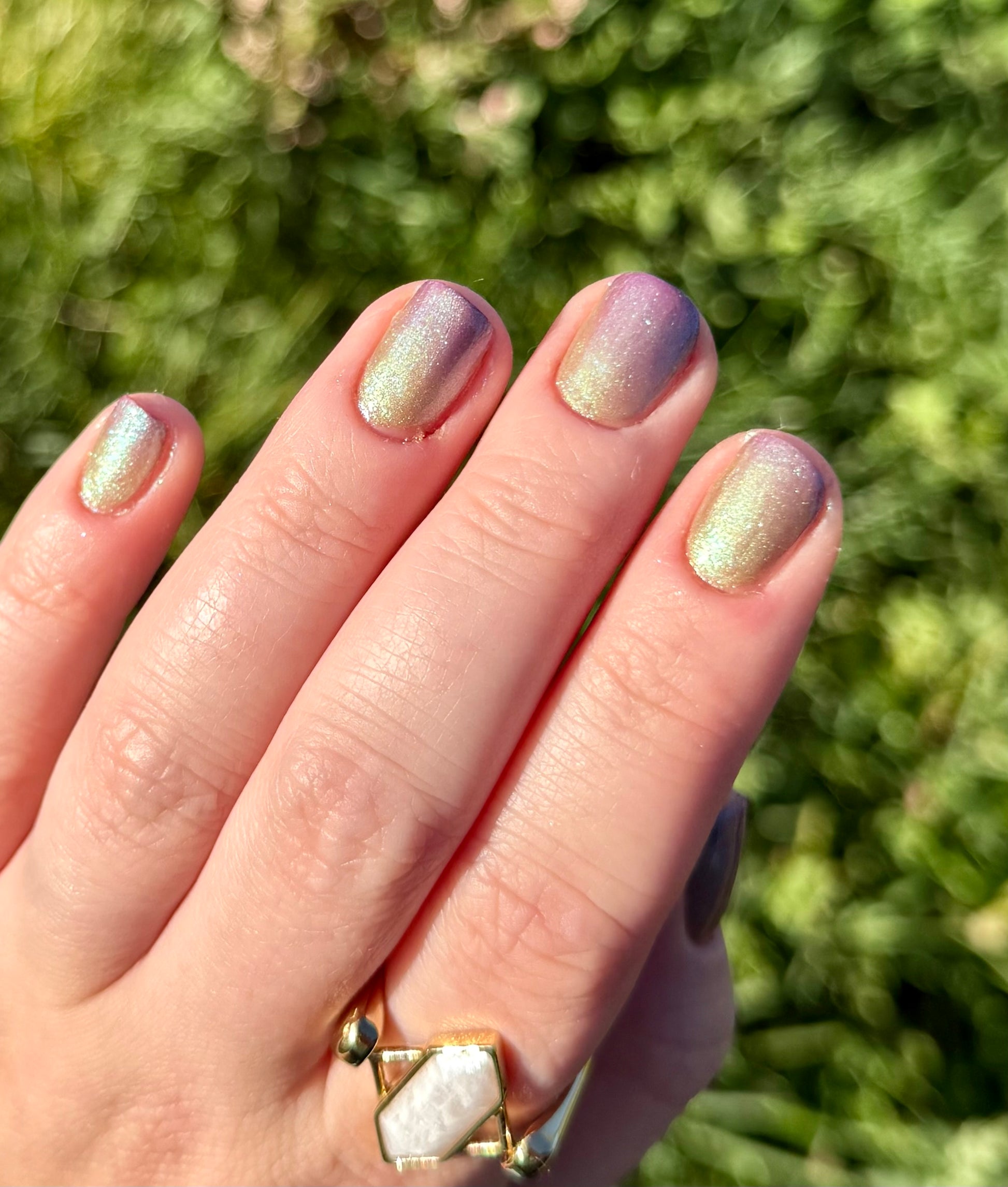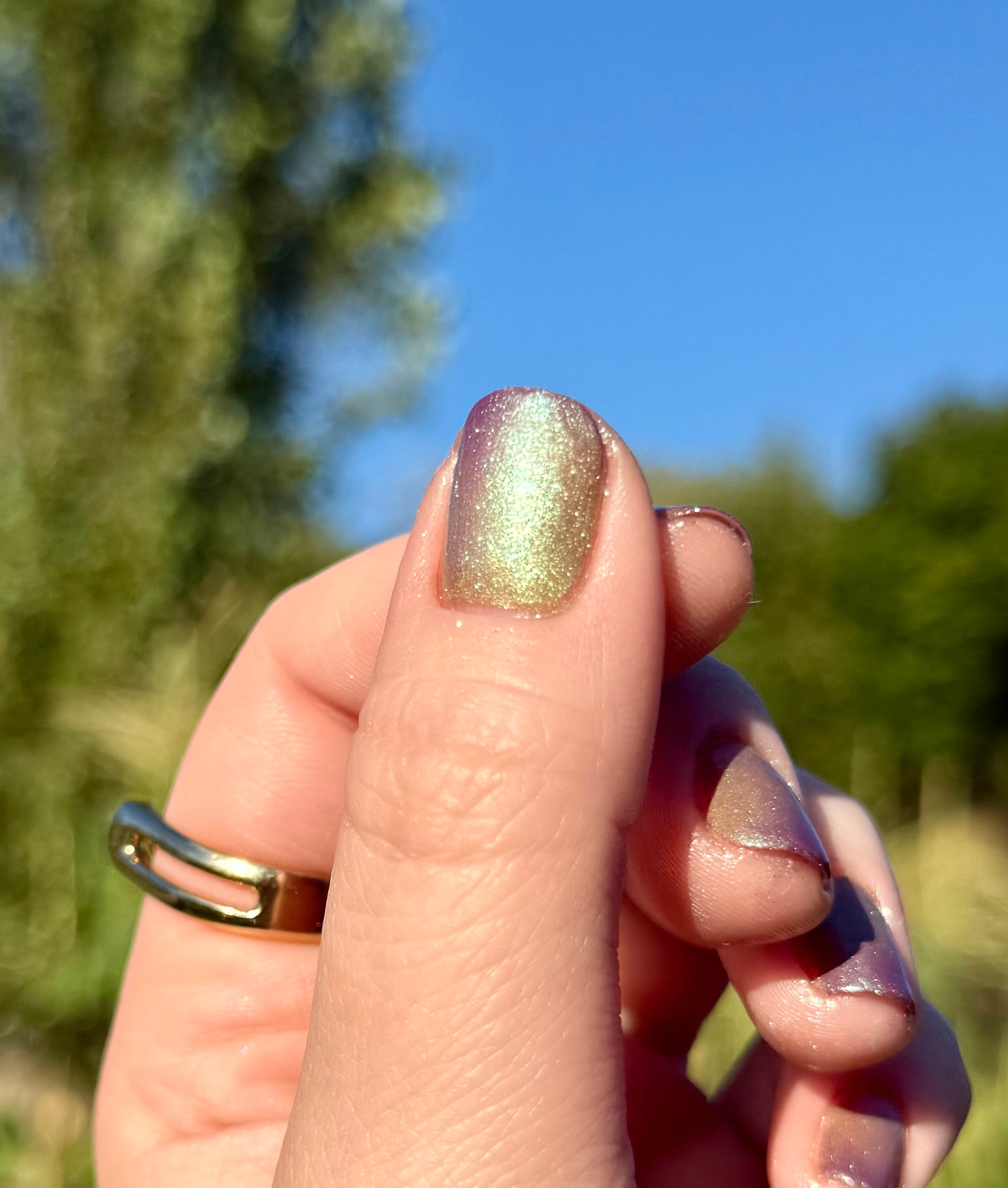🫐 First Bloom – The exclusive polish introduced at our Blueberry Festival soft launch. This magical thermal shifts from a juicy purple to a glowing green, echoing the wild beauty of Maine’s blueberry fields under changing skies.
